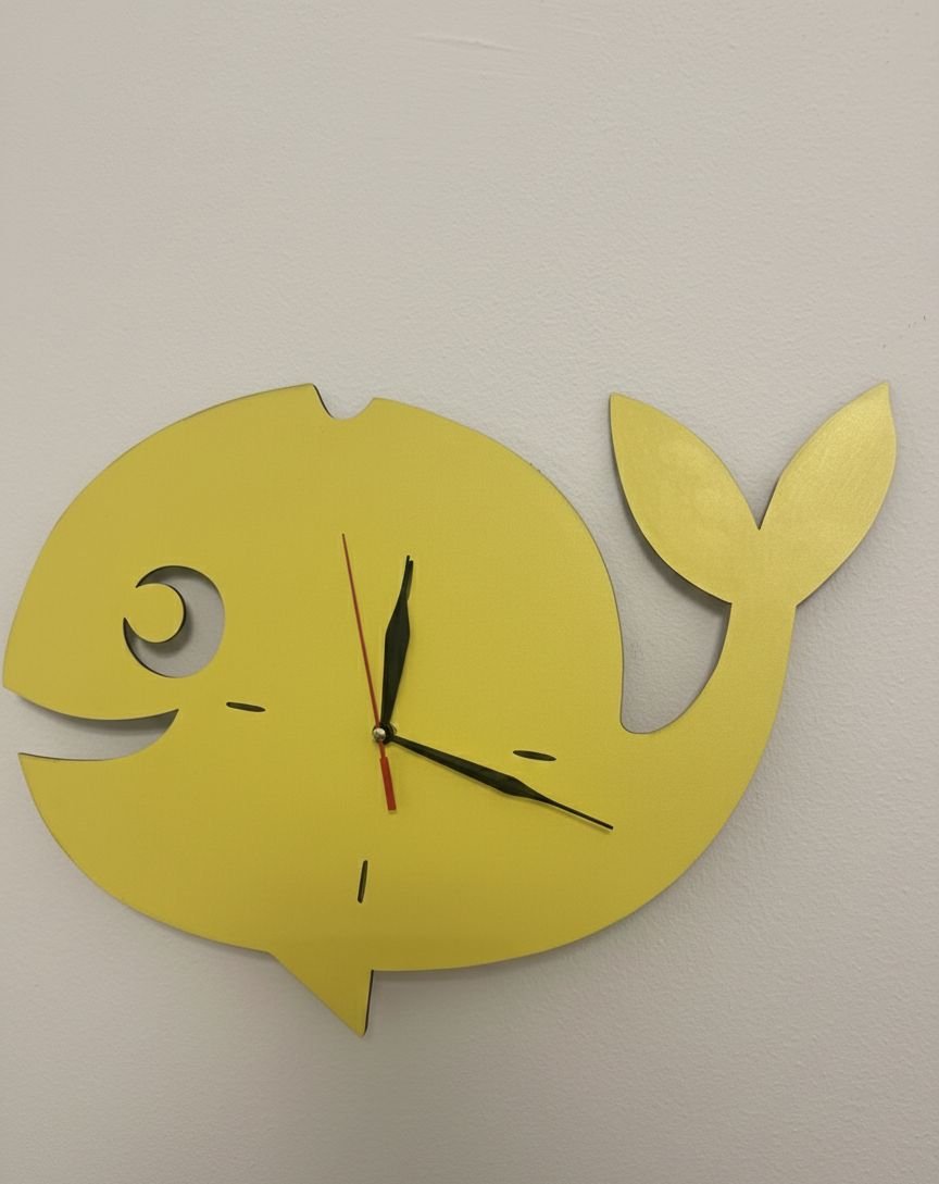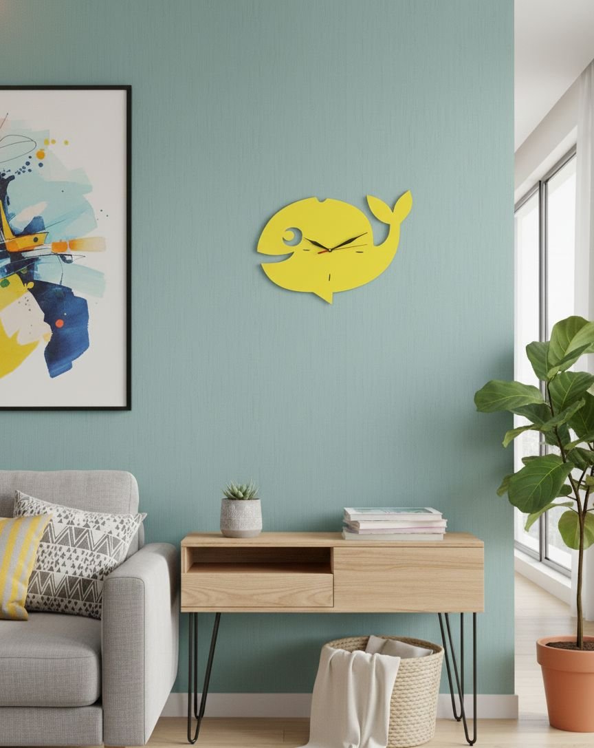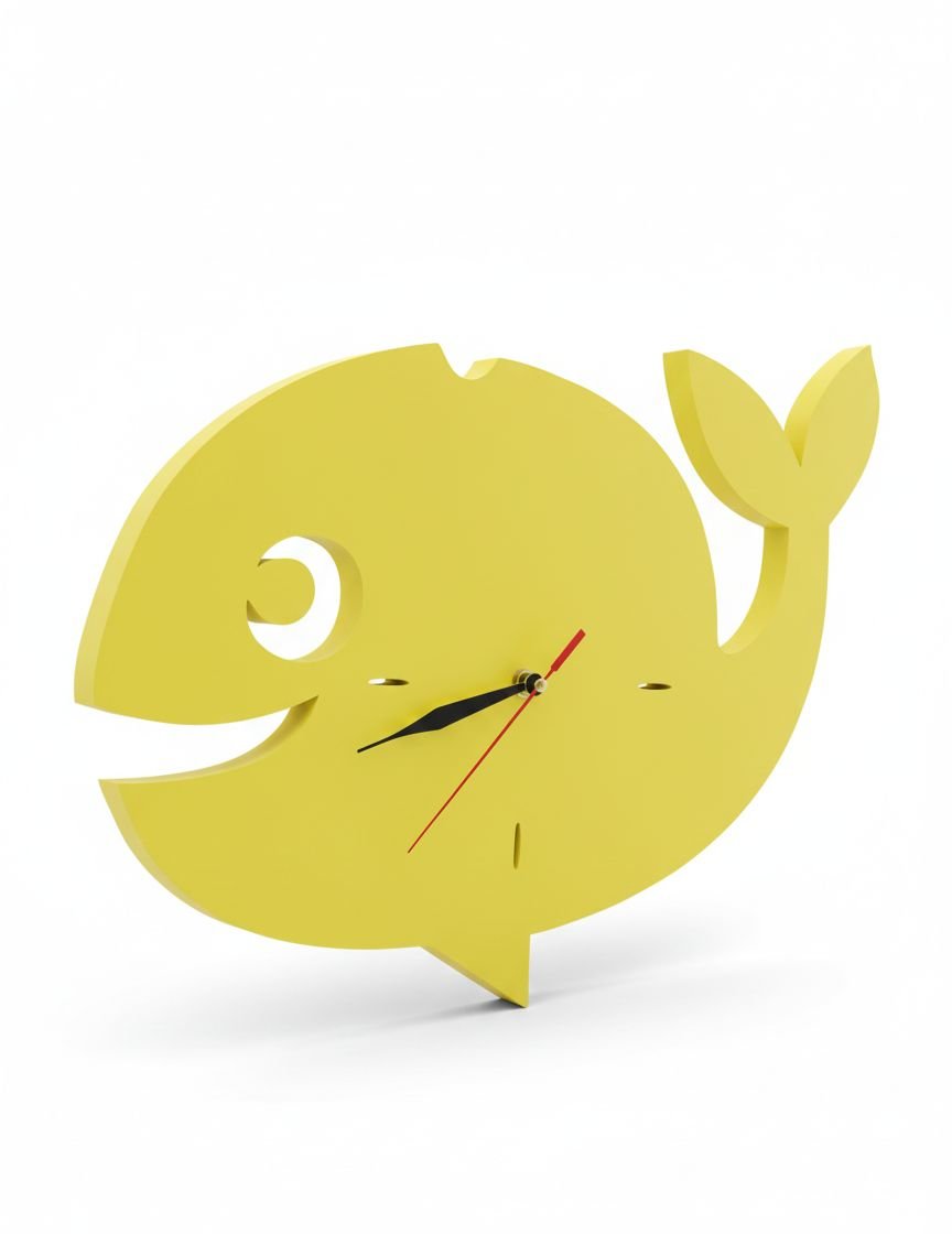 اجعل الوقت يسبح بمرح في منزلك مع هذه الساعة الفريدة التي تأتي على شكل حوت أصفر مبهج.